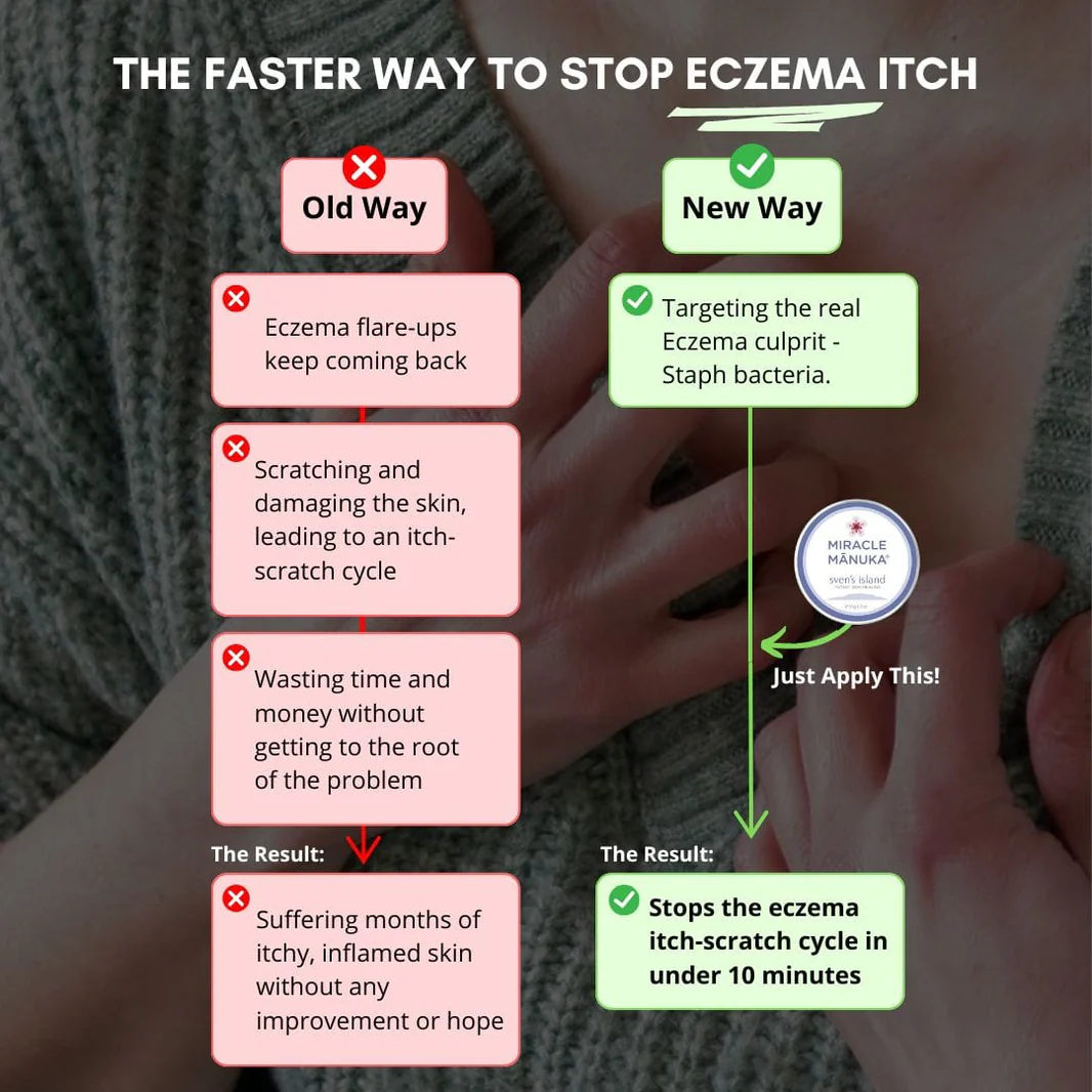 Alivia el eccema, la psoriasis y la dermatitis de forma natural. Una crema 100 % natural para el eccema, desarrollada científicamente para calmar y aliviar la piel seca, enrojecida, con picazón e inflamada, síntomas que suelen asociarse con estas afecciones.